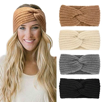 This warm chunky cable knitted headband is made of 100% Acrylic wool. Crocheted turban style headband keep those ears warm with this bulky crocheted head band. A thick and cozy croched ear warmer headband featuring an adorable country. Chic crochet detail a crocheted knot in the center. It fits average teen or adult head of 20-23 inches in circumference. It's just the right size to be cozy and warm on chilly winter nights but effortless and breezy throughout the day. Crafted from vegan, itch free acrylic yarn. This headwrap creates the perfect wintry boho vibe and is the ultimate piece to slip on and accentuate loose curls or messy bun. Package: 4 crocheted headbands.