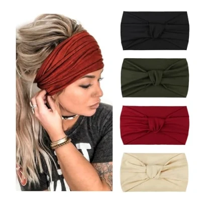 GOOD and bad hair days how to wear them? Cotton blend hairbands are comfortable and versatile, without getting a headache from plastic ones. STRETCHY: Our wide headbands have good elasticity, won’t be too loose or tight, and feel no pressure on your head. Comfortable and tender to wear, perfect to gently secure your messy hair. MATERIAL: 95% Cotton & 5% Spandex to keep fabric stretchy. Easy care, machine washable and lay flat to dry, providing the excellent performance of absorbency, wicking, durability, and abrasion resistance. SIZE & PACKAGE: Girth 17", wide 3"- 4.5", length 9.4" can be stretched up to 12" which proper to most ladies' head circumferences. 4 Pcs turban headbands in your parcel! OCCASION: Perfect for wearing in daily life like makeup, washing face, doing housework, and playing sports like yoga, workout, Pilates, running, hiking, travel, etc.