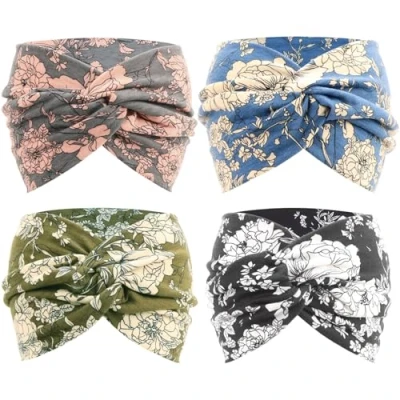 DRESHOW 4 Pack Turban Headbands for Women Wide Vintage Head Wraps Knotted Cute Hair Bands Accessories