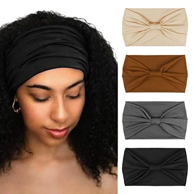 GOOD and bad hair days how to wear them? Cotton blend hairbands are comfortable and versatile, without getting a headache from plastic ones. STRETCHY: Our wide headbands have good elasticity, won’t be too loose or tight, and feel no pressure on your head. Comfortable and tender to wear, perfect to gently secure your messy hair. MATERIAL: 95% Cotton & 5% Spandex to keep fabric stretchy. Easy care, machine washable and lay flat to dry, providing the excellent performance of absorbency, wicking, durability, and abrasion resistance. SIZE & PACKAGE: Girth 17", wide 3"- 4.5", length 9.4" can be stretched up to 12" which proper to most ladies' head circumferences. 4 Pcs turban headbands in your parcel! OCCASION: Perfect for wearing in daily life like makeup, washing face, doing housework, and playing sports like yoga, workout, Pilates, running, hiking, travel, etc.