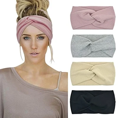 GOOD and bad hair days how to wear them? Cotton blend hairbands are comfortable and versatile, without getting a headache from plastic ones. STRETCHY: Our wide headbands have good elasticity, won’t be too loose or tight, and feel no pressure on your head. Comfortable and tender to wear, perfect to gently secure your messy hair. MATERIAL: 95% Cotton & 5% Spandex to keep fabric stretchy. Easy care, machine washable and lay flat to dry, providing the excellent performance of absorbency, wicking, durability, and abrasion resistance. SIZE & PACKAGE: Girth 17", wide 3"- 4.5", length 9.4" can be stretched up to 12" which proper to most ladies' head circumferences. 4 Pcs turban headbands in your parcel! OCCASION: Perfect for wearing in daily life like makeup, washing face, doing housework, and playing sports like yoga, workout, Pilates, running, hiking, travel, etc.