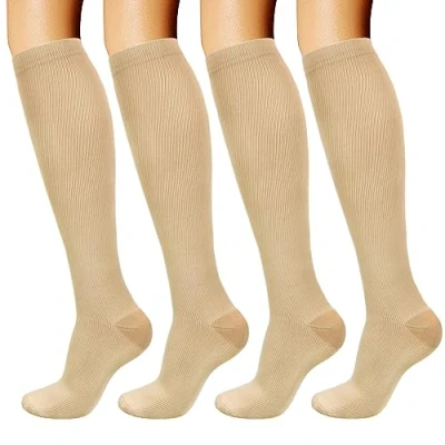 DRESHOW 4 Pairs Compression Socks for Women&Men Circulation Best Support Athletic Running Cycling Travel