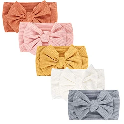 DRESHOW 5 Pack Baby Girl Nylon Headbands Newborn Infant Toddler Hairbands and Bows Child Hair Accessories