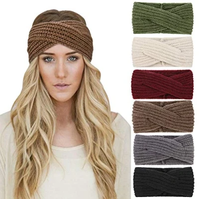 DRESHOW 6 Pack Crochet Ear Warmer Headband Soft Knit Turban Stretch Headbands for Women Winter