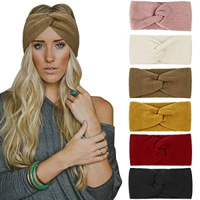 DRESHOW 6 Pack Crochet Ear Warmer Headband Soft Knit Turban Stretch Headbands for Women Winter