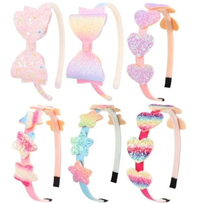 DRESHOW 6 Pack Girls Bow Headbands Glitter Kids Headband Heart Star Hairband for Toddlers Teens