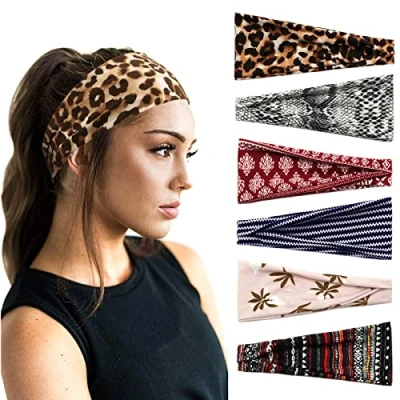 DRESHOW 6 Pack Headbands for Women Vintage Boho Head Wrap Elastic Hair Bands Cute Accessories