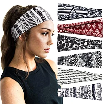 DRESHOW 6 Pack Headbands for Women Wide Elastic Hair Bands Head Wrap Accessories