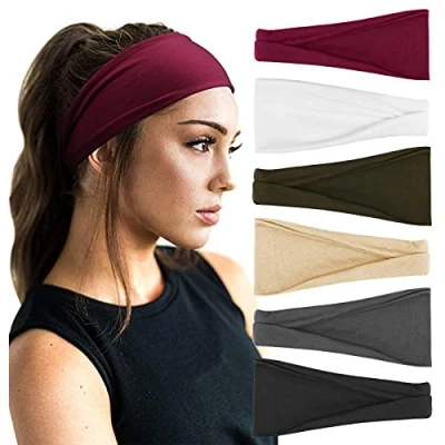 DRESHOW 6 Pack Headbands for Women Wide Elastic Hair Bands Head Wrap Accessories