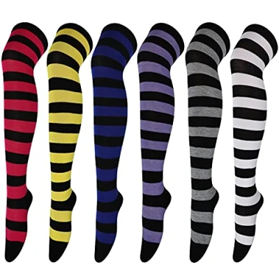 Size: the length from top heel is about 46cm, and toe to heel is about 18cm; with good elasticity, and the maximum circumference of the socks can be stretched to about 38cm; our model has a calf circumference of 28cm and a thigh circumference of 36cm and she feels comfortable and not tight; if you have any other questions, please contact us and we will reply you as soon as possible Our knee high socks are made from soft and comfortable poly-cotton blends, which is breathable and comfortable. They have good elasticity and will not fall down. can be matched with most clothes, suitable for daily wearing, cosplay, dancing and yoga; ideal gifts to send to girls and women Wide range of wearing ways: put them over your knees to keep your knees warm; wear them below your knees and over your calves to have a faddish feeling; you can also push down the thigh-high length tube socks around the ankles as popular loose socks Super cute with shorts and mini skirts, which show your youthful vigor and spike your confidence. You can also wear them under the knees as piles of socks, natural and casual; 6 different styles, enough for many occasions and replacement Sweet, elegant and cute socks can be worn with mini skirts and shorts, comfortable and breathable, smooth and skin-friendly; suitable for wearing in 4 seasons, wearing in spring is comfortable, wearing in an air-conditioned house in summer can protect your knees, wearing in autumn is cool and beautiful, and wearing in winter can keep warm