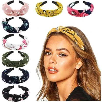 Amazon HIGH QUALITY -- Made of plastic, the adorable hair hoops are wrapped with ribbing or floral cloth, which is soft and smooth to touch. The snug touch makes it wear comfortably, won't dig into the scalp, and hurt the head. FASHION STYLE -- Fashion ribbing design to keep your wonderful looking and hairdos. The fabric crosses in front to create an adorable knotted style. Bright-colored, with no smell and no fade. GREAT DEAL -- Get 8 pieces of Wide Headbands in one package! Multi-color choices to match different minds and outfits. The turban headbands not only keep you a wonderful fashion looking but also keep your hair when washing your face or makeup! DAILY LIFE ACCESSORY -- Presenting classic ribbing fabric with a plastic headband. It's hard to imagine girls don't have a boho hairband. The Knotted headbands are pretty useful for you as a necessary daily hair accessory. They won't slip on your head and are perfect for bad hair days, exercise, the beach, backpacking, and more! IDEAL GIFT FOR HER -- Wonderful headband for yourself to wear as you like or share with your girlfriends, sisters, mother, etc. Give it as a perfect gift on birthdays, anniversaries, valentine's day, mother's day, or any other festival.