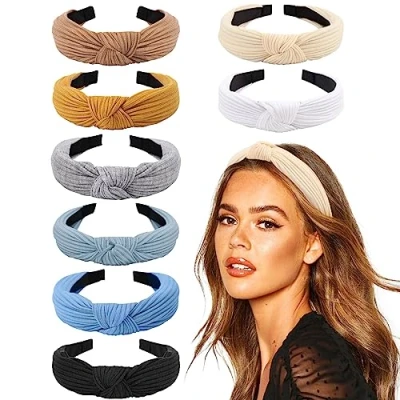 Amazon HIGH QUALITY -- Made of plastic, the adorable hair hoops are wrapped with ribbing or floral cloth, which is soft and smooth to touch. The snug touch makes it wear comfortably, won't dig into the scalp, and hurt the head. FASHION STYLE -- Fashion ribbing design to keep your wonderful looking and hairdos. The fabric crosses in front to create an adorable knotted style. Bright-colored, with no smell and no fade. GREAT DEAL -- Get 8 pieces of Wide Headbands in one package! Multi-color choices to match different minds and outfits. The turban headbands not only keep you a wonderful fashion looking but also keep your hair when washing your face or makeup! DAILY LIFE ACCESSORY -- Presenting classic ribbing fabric with a plastic headband. It's hard to imagine girls don't have a boho hairband. The Knotted headbands are pretty useful for you as a necessary daily hair accessory. They won't slip on your head and are perfect for bad hair days, exercise, the beach, backpacking, and more! IDEAL GIFT FOR HER -- Wonderful headband for yourself to wear as you like or share with your girlfriends, sisters, mother, etc. Give it as a perfect gift on birthdays, anniversaries, valentine's day, mother's day, or any other festival.