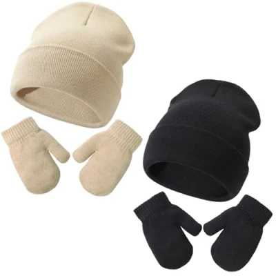 Soft Material: Our toddler winter hats and mittens are made of 50% Viscose, 28% Polyamide, 22% Polyester, no odd smell, skin friendly, breathable and comfortable can resist the cold for infants, toddlers and kids. Great stretch knit allows for longer wear. Suitable Size: Baby winter hats and mittens are available in 2 sizes. Size S suitable for 3-24 months newborn infant boys girls. Size M suitable for 2-5 years old toddler kids boys girls. Please check your baby's size carefully before ordering. There are many colors to choose from to match their favorite outfit and shoes. Unique Design: The knitted beanie keeps baby's head and ears warm in cold weather. And our baby hats and mittens have the great elasticated design to better fit your baby's daily activities. The elasticity of the hat allows it to fit most babies, newborns, toddlers, little girls and boys. Various Occasions: These warm beanie hats will make your little angel even more adorable. Suitable for a variety of occasions: autumn, winter, home, school, travel, birthday, Thanksgiving, Christmas, etc. These accessory sets are great for active little ones who love to play outside! 2 sets of winter hats and mittens in one parcel. Easy to Wear: Our baby cap and gloves set is light weight, will not cause pressure on your child's head, not only bring the baby warm at the same time, but also make your baby look fashionable and cute! The baby gloves are designed with an elastic band at the wrist area, which widens and allows for an easy fit.