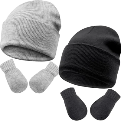 Soft Material: Our toddler winter hats and mittens are made of 50% Viscose, 28% Polyamide, 22% Polyester, no odd smell, skin friendly, breathable and comfortable can resist the cold for infants, toddlers and kids. Great stretch knit allows for longer wear. Suitable Size: Baby winter hats and mittens are available in 2 sizes. Size S suitable for 3-24 months newborn infant boys girls. Size M suitable for 2-5 years old toddler kids boys girls. Please check your baby's size carefully before ordering. There are many colors to choose from to match their favorite outfit and shoes. Unique Design: The knitted beanie keeps baby's head and ears warm in cold weather. And our baby hats and mittens have the great elasticated design to better fit your baby's daily activities. The elasticity of the hat allows it to fit most babies, newborns, toddlers, little girls and boys. Various Occasions: These warm beanie hats will make your little angel even more adorable. Suitable for a variety of occasions: autumn, winter, home, school, travel, birthday, Thanksgiving, Christmas, etc. These accessory sets are great for active little ones who love to play outside! 2 sets of winter hats and mittens in one parcel. Easy to Wear: Our baby cap and gloves set is light weight, will not cause pressure on your child's head, not only bring the baby warm at the same time, but also make your baby look fashionable and cute! The baby gloves are designed with an elastic band at the wrist area, which widens and allows for an easy fit.