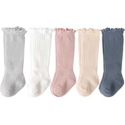 From a traditional designer, these pretty knee-high socks for girls are made from a soft breathable, and light cotton blend. Delicate decoration with a cute bow and an elasticated top to keep them in place. The cute sock edge is woven with rubber bands, which are not easy to age, deform, and will not feel tight. The heel of the sock is reinforced and not easy to fall off. Fine stitching in the toe part, provides excellent performance for absorbency, durability, and abrasion resistance. A great gift for your baby when photography, birthday party, or special day. Dress your little baby up with a pair of beautiful shoes and look. Great value 5 pairs in your parcel match different dresses and occasions. 3 sizes for choices, S: 0-6 Months; M: 6-12 Months; L: 1-3 Years.