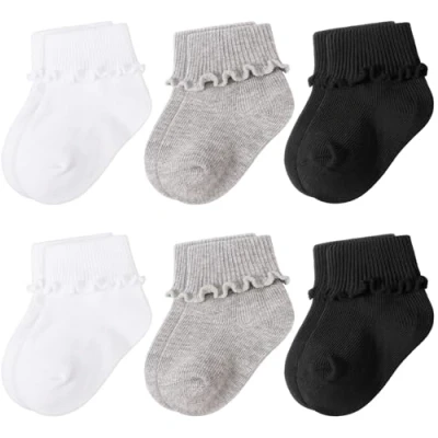 Premium Material: Featuring ruffled lace at the outer cuff counter, these baby girls ankle socks are knitted from cotton blend to ensure they are comfortable to wear, gentle on baby's delicate skin and won't leave marks on baby's leg. Our ruffle socks offer performance and comfort in one. Turn Cuff Design: The edge turn cuff design helps keep your baby calf warm and hard to slide off. These toddler girls socks feature a pretty ruffled floral design, and can highlight the baby's loveliness. Size Options: These non-slip socks for little ones are available in 3 sizes, S fits 0-6 months old, M fits 6-12 months old, L fits 2-5 years old, ensuring a comfortable snug fit at every stage of baby's growing journey. Suitable Occasion: Like a garden in springtime, these baby socks offer up a bright, cheerful color. With ruffle lace edge, breathable and lightweight, this pair of socks will look great with a pair of Mary Jane's and a dress, suitable for flower children, beauty pageants, photography, and other daily or special occasions. Fashionable Trend: DRESHOW focuses on intertwining minimalistic style with cozy sensibilities, channeling Little Princess vibes. Lean into the chic trend by teaming this pair with a dress. What’s more, the 6 pairs in your package make sure to fit your every outfit.