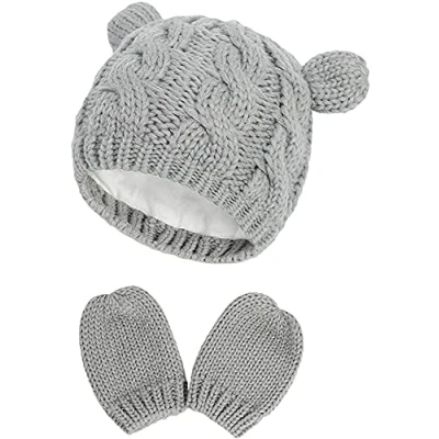 This newborn baby knit hat is made of high quality acrylic, which is ultra soft, lightweight, soft, cozy and breathable. The medium thickness of the soft cotton lining is ideal for baby‘s warm in cool autumn and early winter. This warm autumn winter beanie hat for toddler with elasticity fits for most 0 -18 months babies. Head measurement: S:5.51 inches(14CM), M: 6.3 inches (16CM),L:7.1 inches (18CM).Measuring baby's head circumference before buying will help get the right size. Careful selection of soft and durable materials to ensure environmental protection and comfort. We greatly value the comfort of newborns, and the soft inner lining will not put any pressure on your baby's head and ears. This knitted beanie cap has different classic colors, satisfying babies and young children's curiosity. Warm and stretchy, two cute ears make your baby more cute in the cold wind. Our lovely chunky knitted woolen hats keep fashionable and cute for toddler girls boys. Package: 1 PC baby hat and 1 pair of baby mittens.