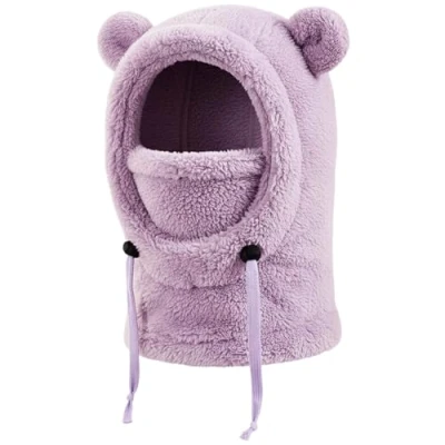 DRESHOW Balaclava Thermal Kids Windproof Fleece Ski Winter Neck Warmer Hood Hat with Cute Fluffy Ears for Girls Cycling Skating Hiking Outdoor Above Age 3 and Under 10