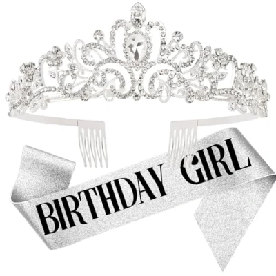 Amazon Delicate Rhinestone Crown: the birthday tiara is crafted with sturdy hard alloy and dazzling rhinestones. Perfect party favors for her cherished one-year-once birthday. Makes her the most special one in the crowd. Shining Sash: the birthday sash is made of glitter ribbon, using hot stamping foil, which will not tear or wrinkle easily. “Birthday Queen” or “Birthday Girl” letters of bright colors make the sash look sparkling and elegant. One Size Fits Most: our birthday sash fits all types of body figures. It can be easily adjusted by a clip. The tiara comes with a comb design, it is suitable for most girls and women. Photos Friendly: the Birthday Girl crown + glitter lettering sash looks great when taking photos, they could be smart photography props, creating a sweet and happy atmosphere. Nice Gift: One Birthday Tiara + One Sash. Great birthday accessory gift for women, girls, daughter, wife, sisters, and grandmother.
