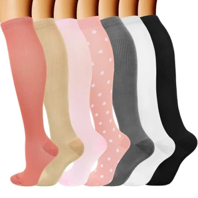 MULTICOLOR COMBO - You get a color combination of your choice. Perfect for a whole week without daily wash. You are getting an amazing offer to keep your feet stay with optimal compression all the time! High quality stitched & Easy to get on even though they are compression socks! COMPRESSION IS PROVEN to allow you to move faster, react quicker and use less energy. Targeted compression zones provide varying levels of support from moderate to extra firm. Unique color design, add a touch of color to your ordinary life. EFFECTIVE - Our compression socks are highly recommended by preferred by trainers. Whether you are an athlete, teacher, flight crew, receptionist, office worker, our socks are universally suitable for all work. Breathable high performance fabric keeps an optimal temperature. We are confident that you will choose it! GREAT GIFT IDEA - If you are struggling with a gift idea to a loved one or a casual friend, this is will reduce your anxiety without even you wearing them. Great gift choice for joggers, athletes, workout fanatics, office workers, ok...can we just say whoever use their leg extensively. A veritable necessity for anyone working long-hours standing on their feet, or those heavily invested in athletics and a fitness lifestyle. Feel happy to put this item into your Cart! Feel free to enjoy your fascinating life with it!
