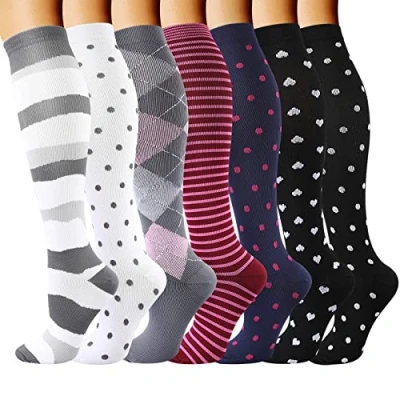 MULTICOLOR COMBO - You get a color combination of your choice. Perfect for a whole week without daily wash. You are getting an amazing offer to keep your feet stay with optimal compression all the time! High quality stitched & Easy to get on even though they are compression socks! COMPRESSION IS PROVEN to allow you to move faster, react quicker and use less energy. Targeted compression zones provide varying levels of support from moderate to extra firm. Unique color design, add a touch of color to your ordinary life. EFFECTIVE - Our compression socks are highly recommended by preferred by trainers. Whether you are an athlete, teacher, flight crew, receptionist, office worker, our socks are universally suitable for all work. Breathable high performance fabric keeps an optimal temperature. We are confident that you will choose it! GREAT GIFT IDEA - If you are struggling with a gift idea to a loved one or a casual friend, this is will reduce your anxiety without even you wearing them. Great gift choice for joggers, athletes, workout fanatics, office workers, ok...can we just say whoever use their leg extensively. A veritable necessity for anyone working long-hours standing on their feet, or those heavily invested in athletics and a fitness lifestyle. Feel happy to put this item into your Cart! Feel free to enjoy your fascinating life with it!