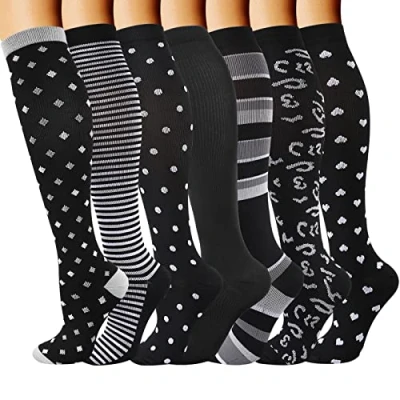 MULTICOLOR COMBO - You get a color combination of your choice. Perfect for a whole week without daily wash. You are getting an amazing offer to keep your feet stay with optimal compression all the time! High quality stitched & Easy to get on even though they are compression socks! COMPRESSION IS PROVEN to allow you to move faster, react quicker and use less energy. Targeted compression zones provide varying levels of support from moderate to extra firm. Unique color design, add a touch of color to your ordinary life. EFFECTIVE - Our compression socks are highly recommended by preferred by trainers. Whether you are an athlete, teacher, flight crew, receptionist, office worker, our socks are universally suitable for all work. Breathable high performance fabric keeps an optimal temperature. We are confident that you will choose it! GREAT GIFT IDEA - If you are struggling with a gift idea to a loved one or a casual friend, this is will reduce your anxiety without even you wearing them. Great gift choice for joggers, athletes, workout fanatics, office workers, ok...can we just say whoever use their leg extensively. A veritable necessity for anyone working long-hours standing on their feet, or those heavily invested in athletics and a fitness lifestyle. Feel happy to put this item into your Cart! Feel free to enjoy your fascinating life with it!