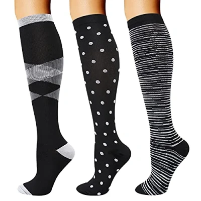 MULTICOLOR COMBO - You get a color combination of your choice. Perfect for a whole week without daily wash. You are getting an amazing offer to keep your feet stay with optimal compression all the time! High quality stitched & Easy to get on even though they are compression socks! COMPRESSION IS PROVEN to allow you to move faster, react quicker and use less energy. Targeted compression zones provide varying levels of support from moderate to extra firm. Unique color design, add a touch of color to your ordinary life. EFFECTIVE - Our compression socks are highly recommended by preferred by trainers. Whether you are an athlete, teacher, flight crew, receptionist, office worker, our socks are universally suitable for all work. Breathable high performance fabric keeps an optimal temperature. We are confident that you will choose it! GREAT GIFT IDEA - If you are struggling with a gift idea to a loved one or a casual friend, this is will reduce your anxiety without even you wearing them. Great gift choice for joggers, athletes, workout fanatics, office workers, ok...can we just say whoever use their leg extensively. A veritable necessity for anyone working long-hours standing on their feet, or those heavily invested in athletics and a fitness lifestyle. Feel happy to put this item into your Cart! Feel free to enjoy your fascinating life with it!