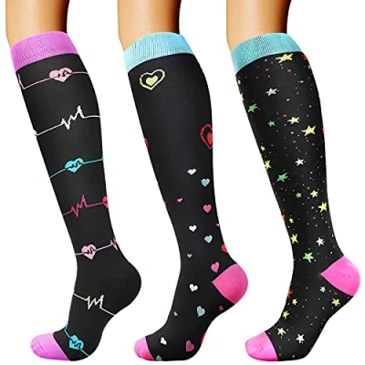 Amazon MULTICOLOR COMBO - You get a color combination of your choice. Perfect for a whole week without daily wash. You are getting an amazing offer to keep your feet stay with optimal compression all the time! High quality stitched & Easy to get on even though they are compression socks! COMPRESSION IS PROVEN to allow you to move faster, react quicker and use less energy. Targeted compression zones provide varying levels of support from moderate to extra firm. Unique color design, add a touch of color to your ordinary life. EFFECTIVE - Our compression socks are highly recommended by preferred by trainers. Whether you are an athlete, teacher, flight crew, receptionist, office worker, our socks are universally suitable for all work. Breathable high performance fabric keeps an optimal temperature. We are confident that you will choose it! GREAT GIFT IDEA - If you are struggling with a gift idea to a loved one or a casual friend, this is will reduce your anxiety without even you wearing them. Great gift choice for joggers, athletes, workout fanatics, office workers, ok...can we just say whoever use their leg extensively. A veritable necessity for anyone working long-hours standing on their feet, or those heavily invested in athletics and a fitness lifestyle. Feel happy to put this item into your Cart! Feel free to enjoy your fascinating life with it!