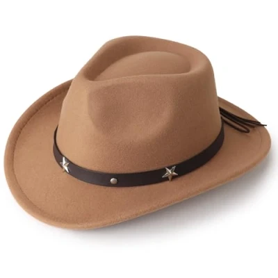 Premium Material: Crafted from cotton and polyester, the western cowboy and cowgirl hats show suede texture and delicate touch, giving your kid the ultimate visual and tactile experience, the perfect embodiment of fashion design and high quality. Suitable Size: This classic felt wide brim hat fits most boys, girls, and teens and is suitable for 4-12 years old. With the hat circumference of 20.9"-21.7"/53-55cm, the brim width of 2.4"/6cm, and the hat height of 3.9"/10cm, the handsome and charming cowboy hats are suitable for kids western cowboy costume accessories. Great Accessory: This vintage solid color hat can be easily matched with any of teens' daily, casual, outdoor and travel outfits. Wearing this charming unisex cowboy cowgirl hat, they are the prettiest one in the crowd, and people can't help but be attracted to them. Ideal Present: Classic western cowboy hat style, boys and girls cowboy cowgirl hats with rolled brim and stars buckle belt decoration, unique and timeless retro style that will make your child stylish, elegant and charming; they are the ideal present for your children. Suitable Occasions: The simple and stylish fedora hats are perfect for daily wear and all outdoor activities such as fishing, camping, cycling, church functions, riding a horse, western-themed parties, cowboy costume accessories, Halloween cowboy costumes, music festivals and concerts.