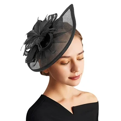 Material: Our fascinator hats are crafted from polyester and feather, lightweight, stretchy, soft, and comfortable. The hair clip is matched with a retro camouflage hat and feather accessory which is very beautiful. Size: One size fits most heads with a hair clip and a gently bendable headband. Features: It is a timeless, elegant, and charming tea party hat for women. The combination of a Fascinator hat, headband, and feather flower is even more stunning. Occasions: Cocktail parties, weddings, tea parties, Gatsby parties in the 1920s, Easter, Carnival, Church, Halloween, horse racing, festivals, Victorian costumes, and other special occasions. Packing: One fascinator hat with a hair clip, one elastic hair hoop.