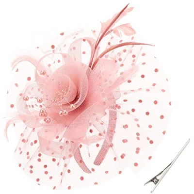 DRESHOW Fascinators Hat Flower Mesh Feathers on a Headband and Forked Clip Cocktail Tea Party Headwear for Girls Women