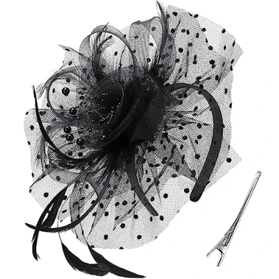 Amazon Material: This vintage glamour and fancy charming hat with its birdcage veiling and flush amount of boa feathers that cascade at the back with goose biot feathers forming ovals and that sways in the wind. Trendy style matches everything. One size fits all. Firmly secured underneath with headband and clip to hold in place and to give you the versatility to wear it any desire you like. You can style your hair like a bun and use it as a bridal flower hair clip or you can place it further towards your face and wear it as a vintage styled flower fascinator. Timeless glamour. This sassy fascinator gives a nod to vintage style with a bouncy mesh ribbon and flighty feathers. With its classic sinamay mesh shape and elegant look it will be your go-to fascinator for the season. This beautiful, timeless, classy and elegant black vintage inspired feather Fascinator hat is suitable for as a wedding Fascinator, tea party hat, Cocktail hat, black merry widow hat or any special occasion Specially Designed for Lady and Women to Look Eleegant and Pretty, Like a Beautiful Fascinator hat for a duchess to attend the royal banquet
