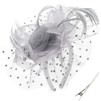DRESHOW Fascinators Hat Flower Mesh Feathers on a Headband and Forked Clip Cocktail Tea Party Headwear for Girls Women