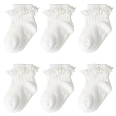 Premium Material: Featuring a frilly lace at the outer cuff counter, these baby girls ankle socks are crafted from combed cotton-blend knit to ensure comfortable wear, gentle on baby's delicate skin and won't leave marks on baby's leg. Our lace socks offer performance and comfort in one. Unique Design: Our extra strong grip pattern covers the entire balls of the feet which prevent your baby from slipping on hardwood floors or any smooth floors and offering optimized moisture absorption. These toddler girls socks feature a pretty ruffled floral design, and can highlight the baby's loveliness. Size Options: These non-slip socks for little ones are available in 3 sizes, XS fits infants 0-6 months old, S fits babies 6-12 months old, and M fits toddlers 1-3 years old, ensuring a comfortable snug fit at every stage of baby's growing journey. Suitable Occasion: Like a garden in springtime, these baby socks offer up a bright, cheerful color. With ruffle lace edge, breathable and lightweight, this pair of socks will look great with a pair of Mary Jane's and a dress, suitable for flower children, beauty pageants, photography, and other daily or special occasions. Fashionable Trend: DRESHOW focuses on intertwining minimalistic style with cozy sensibilities, channeling Little Princess vibes. Lean into the chic trend by teaming this pair with a dress. What’s more, the 6 pairs in your package make sure to fit your every outfit.