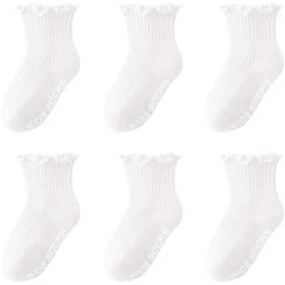 Premium Material: Featuring ruffled lace at the outer cuff counter, these baby girls ankle socks are knitted from 80% cotton, 17% nylon and 3% spandex to ensure they are comfortable to wear, gentle on baby's delicate skin and won't leave marks on baby's leg. Our ruffle socks offer performance and comfort in one. Unique Design: Our extra strong grip pattern covers the entire balls of the feet which prevent your baby from slipping on hardwood floors or any smooth floors and offering optimized moisture absorption. These toddler girls socks feature a pretty ruffled floral design, and can highlight the baby's loveliness. Size Options: These non-slip socks for little ones are available in 4 sizes, S fits infants 0-12 months old, M fits babies 1-2 years old, L fits toddlers 3-4 years old, , and XL fits toddlers 5-6 years old, ensuring a comfortable snug fit at every stage of baby's growing journey. Suitable Occasion: Like a garden in springtime, these baby socks offer up a bright, cheerful color. With ruffle lace edge, breathable and lightweight, this pair of socks will look great with a pair of Mary Jane's and a dress, suitable for flower children, beauty pageants, photography, and other daily or special occasions. Fashionable Trend: DRESHOW focuses on intertwining minimalistic style with cozy sensibilities, channeling Little Princess vibes. Lean into the chic trend by teaming this pair with a dress. What’s more, the 6 pairs in your package make sure to fit your every outfit.