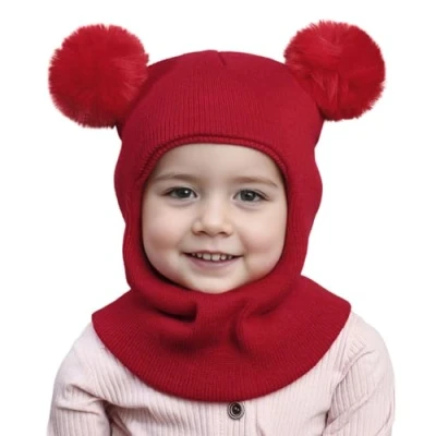 Soft Material: The toddler winter hat scarf is made of 100% acrylic blend, no odd smell, skin friendly, breathable and comfortable can resist the cold for infants, toddlers and kids. Great stretch knit allows for longer wear. Unique Design: One piece hat and scarf design can protect kids little head ears and neck from cold weather. And our baby hats scarf beanies with cute double pom pom's design on the hat top, attractive and adorable. Suitable Size: One size with stretch, the fits ranges from babies to children. Suitable for 1-6 Years. The elasticity of the kid beanies knitted hood soft hat scarf allows it to fit most babies, toddlers, children, little girls and boys. Various Occasions: Our warm hats scarves are suitable for a variety of occasions: autumn, winter, school, travel, birthday, Thanksgiving, Christmas, etc. The winter warm beanie is also great for active little ones who love to play outside like skiing, snowboard, camping, hiking, cycling, etc. Washing Instruction: These warm winter hats scarves will make your little angel even more adorable. Hand washing is recommended for better results! If machine washing, it is recommended to put it into a laundry bag to avoid damage.