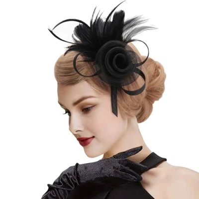 DRESHOW Mesh Flower Feather Fascinators with Clip and Head Band Cocktail Tea Party Headwear for Girls & Women
