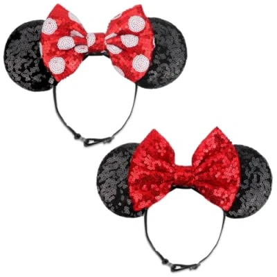 DRESHOW Minnie Ears Headbands Mouse Sequin Bow Elastic Adjustable Headband Glitter Party Decoration Cosplay Costume for Women
