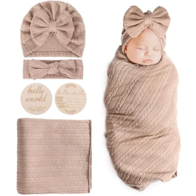 đăSoft Fabrică- This baby blanket and headband hat set are made of super soft, stretchy and comfortable fabric. Warm and comfortable for baby's delicate skin. They contain no any harmful chemicals and are gentle on even the most sensitive skin. đăBaby Sleep Betteră- Our newborn receiving blankets are large enough to wrap babies more easily and securely from shoulder to foot, preventing newborn babies from startling themselves awake with random arm movements, recreating the security and comfort of the womb. Muslin baby blankets also have some stretch to ensure the comfort of the baby and get them a better sleep. đăSuitable Occasionsă- This set will make your baby girl feel loved and cared for on any occasion. It is a versatile fashion choice for baby showers, baby registries, newborn baby photography or any special occasion. They are designed for long-lasting durability and easy care, theyâll serve a growing family for many years. All new parents will love this set. đăPractical and Fashionable Designă- This comfortable newborn swaddle set is designed with a textured knit to make it more comfortable for your baby to wear without slipping. Wheat ear design is the trend this year! Our baby blanket has no zippers, no Velcro or snaps to protect your baby from any potential risks, no danger to your small angel. đăMulti-Purposeă- You will have endless creative ways to use our nursery swaddling blankets! The baby blankets can also be used as receiving blankets, cuddle blankets, nursing covers, sun shades, scarves, stroller covers, burp cloths, car seat covers, play mats, changing pads, mini crib sheets, baby photography props, picnic or tummy time blankets, changing table cover etc.