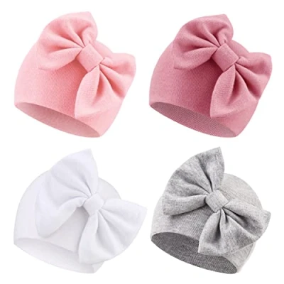 Material: our newborn baby bow hats are made of natural high-quality cotton, which is soft, skin-friendly, breathable, and comfortable, perfect for newborns Size: newborn baby turban hat size is W5.5” *H5.4” (14cm*13.8cm). The baby hat circumstance is 11’’(28cm). Good elasticity, enough stretch to accommodate the baby's head growth. Suitable for 0-6 months newborn infants! Newborn Hospital Hat: adorned with a bow to create a lovely atmosphere, the sweet baby items will highlight the cuteness of your baby and instantly lend a touch of animation. Solid color nursery caps are the best for the minimalist choice. Care Instruction: Due to newborn beanie hats are worn by babies, there is no place to do suture and cloth is very soft fabric to protect baby's head. These baby hats newborn can only be gently washed by hand Package: 4 pack infant beanie bow hats in one parcel. Great for all seasons. It is recommended to wash by hand for better effect without any deformation!