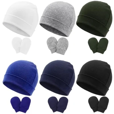 Material: our newborn baby cap and gloves are made of 96% Cotton and 4% Spandex. Natural environmentally-friendly materials are ideal for newborn babies! Newborn beanie hat and gloves, quality imported fabric! it is durable, light, soft, breathable, skin-friendly, and has good elasticity. Perfect for newborns. Good elasticity, enough stretch to accommodate the baby's head growth. Suitable for 0-6 months of newborn infants! Perfect baby hat and glove accessories. Multi-colors can be matched to any outfit or shoe. It can be worn in spring, summer, autumn, and winter (indoor), for warmth and perfect head protection! Pack: 6 newborn hats and 6 pairs of mittens. For baby girls/ boys 0-6 months.