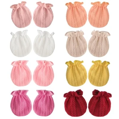 PACKAGE QUANTITY: You will get 8 pairs of newborn baby mittens in different colors, which are easy to match and offer enough quantity for daily replacement and daily wear, you can also share the cotton mittens with the babies of your friends and family. ORGANIC CERTIFIED COTTON: Our baby mittens 0-6 months are crafted from 100% Cotton! Luxuriously soft newborn mittens for utmost comfort. Infant mittens are made from the finest organic fabrics that your baby deserves. THOUGHTFUL DESIGN: The wrist part of the cotton gloves is elastic, making them easy to put on and take off, keeping the gloves stayed tightly on the baby's small hands and fitting snugly to keep the baby from self scratching. VARIETY: Available in different colors, the colors are suitable to the baby's gender or the buyer's preference. WIDELY APPLICABLE: These infant toddler gloves can be worn for various occasions, such as baby showers, birthday parties, walking, home, backyard, family gathering, playing even sleeping, and they can also be applied as lovely photo props to help you take memorable photos for your kids.