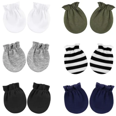 PACKAGE QUANTITY: You will get 6 pairs of newborn baby mittens in different colors, which are easy to match and offer enough quantity for daily replacement and daily wear, you can also share the cotton mittens with the babies of your friends and family. ORGANIC CERTIFIED COTTON: Our baby mittens 0-6 months are crafted from 100% Cotton! Luxuriously soft newborn mittens for utmost comfort. Infant mittens are made from the finest organic fabrics that your baby deserves. THOUGHTFUL DESIGN: The wrist part of the cotton gloves is elastic, making them easy to put on and take off, keeping the gloves stayed tightly on the baby's small hands and fitting snugly to keep the baby from self scratching. VARIETY: Available in different colors, the colors are suitable to the baby's gender or the buyer's preference. WIDELY APPLICABLE: These infant toddler gloves can be worn for various occasions, such as baby showers, birthday parties, walking, home, backyard, family gathering, playing even sleeping, and they can also be applied as lovely photo props to help you take memorable photos for your kids.