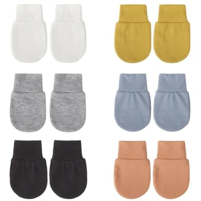 PACKAGE QUANTITY: You will get 6 pairs of newborn baby mittens in different colors, which are easy to match and offer enough quantity for daily replacement and daily wear, you can also share the cotton mittens with the babies of your friends and family. SOFT MATERIAL: Our baby mittens 0-6 months are crafted from polyester and spandex! Luxuriously soft newborn mittens for utmost comfort. Infant mittens are made from the finest organic fabrics that your baby deserves. THOUGHTFUL DESIGN: The wrist part of the cotton gloves is elastic, making them easy to put on and take off, keeping the gloves stayed tightly on the baby's small hands and fitting snugly to keep the baby from self scratching. VARIETY: Available in different colors, the colors are suitable to the baby's gender or the buyer's preference. WIDELY APPLICABLE: These infant toddler gloves can be worn for various occasions, such as baby showers, birthday parties, walking, home, backyard, family gathering, playing even sleeping, and they can also be applied as lovely photo props to help you take memorable photos for your kids.