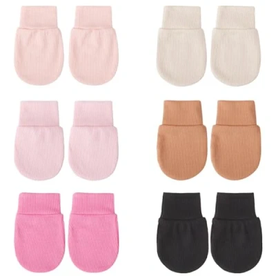 PACKAGE QUANTITY: You will get 6 pairs of newborn baby mittens in different colors, which are easy to match and offer enough quantity for daily replacement and daily wear, you can also share the cotton mittens with the babies of your friends and family. SOFT MATERIAL: Our baby mittens 0-6 months are crafted from polyester and spandex! Luxuriously soft newborn mittens for utmost comfort. Infant mittens are made from the finest organic fabrics that your baby deserves. THOUGHTFUL DESIGN: The wrist part of the cotton gloves is elastic, making them easy to put on and take off, keeping the gloves stayed tightly on the baby's small hands and fitting snugly to keep the baby from self scratching. VARIETY: Available in different colors, the colors are suitable to the baby's gender or the buyer's preference. WIDELY APPLICABLE: These infant toddler gloves can be worn for various occasions, such as baby showers, birthday parties, walking, home, backyard, family gathering, playing even sleeping, and they can also be applied as lovely photo props to help you take memorable photos for your kids.