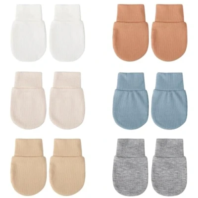 PACKAGE QUANTITY: You will get 6 pairs of newborn baby mittens in different colors, which are easy to match and offer enough quantity for daily replacement and daily wear, you can also share the cotton mittens with the babies of your friends and family. SOFT MATERIAL: Our baby mittens 0-6 months are crafted from polyester and spandex! Luxuriously soft newborn mittens for utmost comfort. Infant mittens are made from the finest organic fabrics that your baby deserves. THOUGHTFUL DESIGN: The wrist part of the cotton gloves is elastic, making them easy to put on and take off, keeping the gloves stayed tightly on the baby's small hands and fitting snugly to keep the baby from self scratching. VARIETY: Available in different colors, the colors are suitable to the baby's gender or the buyer's preference. WIDELY APPLICABLE: These infant toddler gloves can be worn for various occasions, such as baby showers, birthday parties, walking, home, backyard, family gathering, playing even sleeping, and they can also be applied as lovely photo props to help you take memorable photos for your kids.