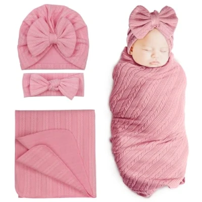 DRESHOW Newborn Receiving Blanket Toddler Warm for Girls with Matching Bow Hat and Headband