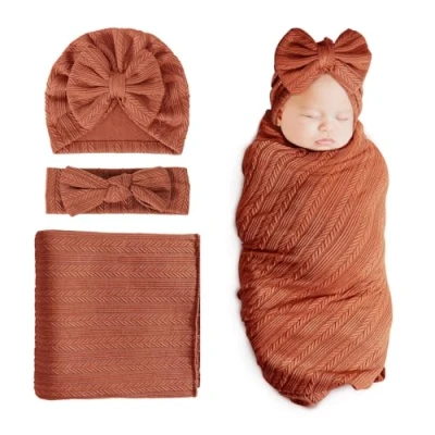 đăSoft Fabrică- This baby blanket and headband hat set are made of super soft, stretchy and comfortable fabric. Warm and comfortable for baby's delicate skin. They contain no any harmful chemicals and are gentle on even the most sensitive skin. đăBaby Sleep Better ă- Our newborn receiving blankets whose sizes are 31.5inch/ 80cm* 31.5inch/ 80cm are large enough to wrap babies more easily and securely from shoulder to foot, preventing newborn babies from startling themselves awake with random arm movements, recreating the security and comfort of the womb. Muslin baby blankets also have some stretch to ensure the comfort of the baby and get them a better sleep. đăAwesome Choicesă- This set will make a caring and thoughtful choice on any occasion for baby girls. It is a perfect choice for baby showers, baby registries, newborn baby photography or on any special choiceing occasion. They are designed for long-lasting durability and easy care, theyâll serve a growing family for many years. All new parents will love this set. đăPractical and Fashionable Designă- This comfortable newborn swaddle set is designed with a textured knit to make it more comfortable for your baby to wear without slipping. Wheat ear design is the trend this year! Our baby blanket has no zippers, no Velcro or snaps to protect your baby from any potential risks, no danger to your small angel. đăMulti-Purposeă- You will have endless creative ways to use our nursery swaddling blankets! The baby blankets can also be used as receiving blankets, cuddle blankets, nursing covers, sun shades, scarves, stroller covers, burp cloths, car seat covers, play mats, changing pads, mini crib sheets, baby photography props, picnic or tummy time blankets, changing table cover etc.