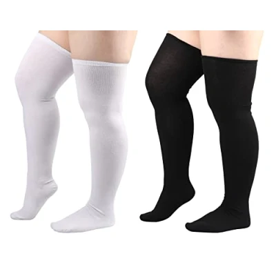 Elastic Material: These stretchy tube socks are crafted from quality polyester and cotton blends, soft, flexible, comfortable, durable, and breathable. The good elasticity makes the cotton socks stay up nonslip and stay put. Plus Size Thigh High Socks: The length from top to heel of the over-knee socks is about 21.2 inches/54 cm, and the toe to the heel is about 7.87 inches/20 cm and width of the stocking mouth is 4.3 inches/11 cm. The socks are suitable for people who are 5'/150cm-5'7"/170cm in height and 135-220 LB in weight.The length of the leg socks worn is 26.8 inches/68 cm and the recommended maximum leg circumference is 19.6 inches/50 cm. Style Diversity: These long socks are in Minimalist, Classic, Vintage, Casual and Sporty style, which means you can be Cute, Sexy, and Stylish with the striped socks, show your vigor and spike your confidence.The highly elastic and durable thigh socks for thick thighs fit Average Height women. Versatile: The thigh stockings are suitable for daily wear, cosplay, dancing, yoga, and sports. Cute boots socks for women add a playful touch to your look when worn with mini skirts and shorts. Stylish to wear with boots, booties, over stockings, jeans, leggings, or skinny pants. The must-haves socks are ideal gifts for girls and women. Package: 2 pairs of plus size leg warmer socks in one parcel. The thick thighs socks will be your best partner in autumn winter. Different styles and multicolored choices.