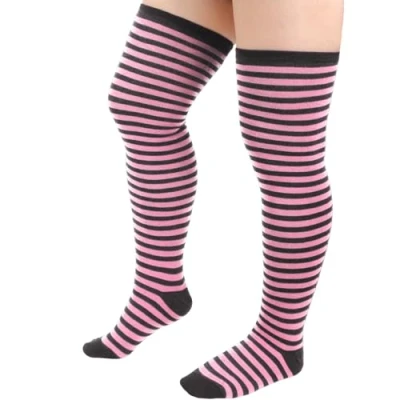 DRESHOW Plus Size Women Thigh High Socks Striped Over Knee Long Boot Stockings Leg Warmers